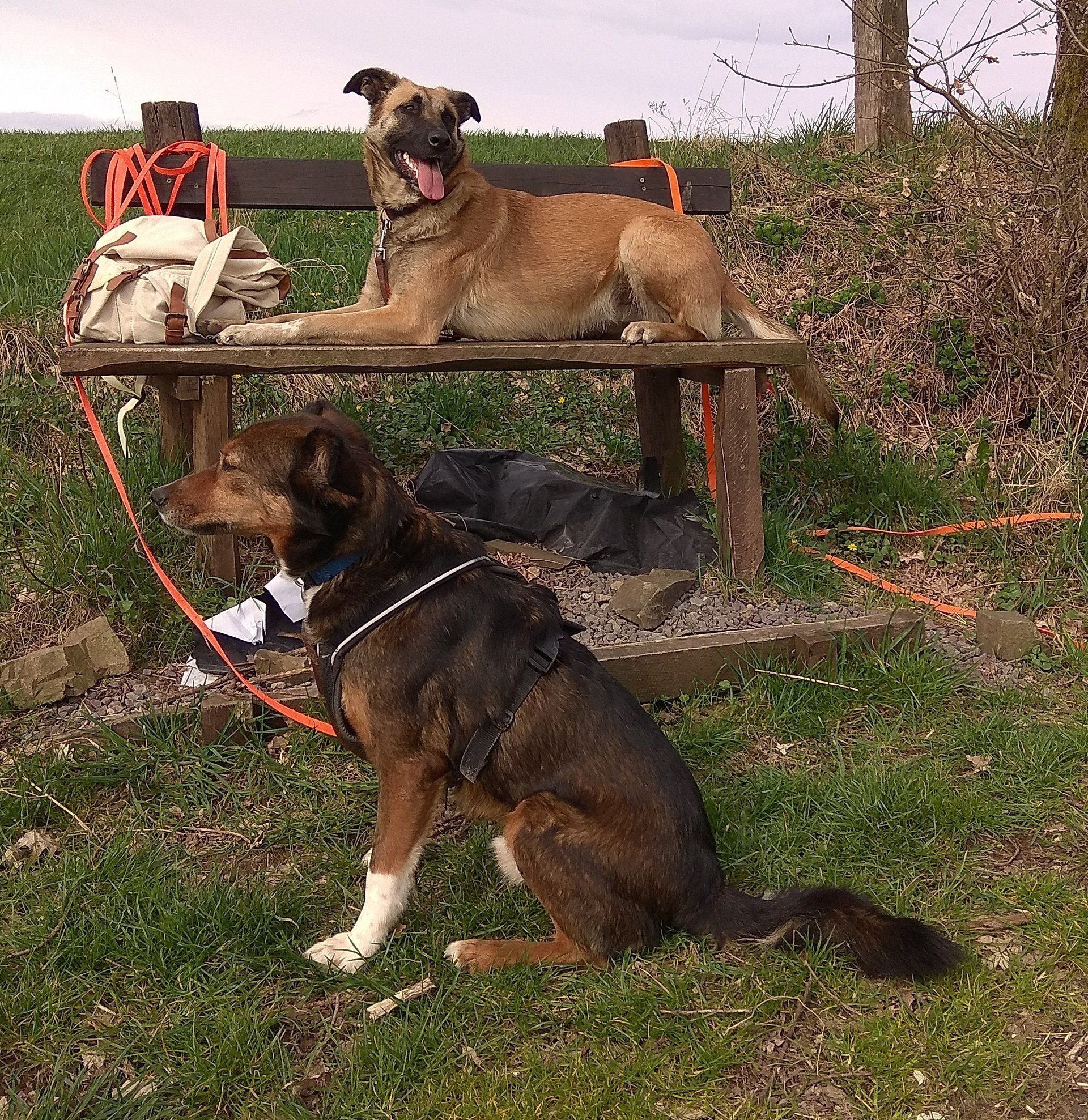 Diese Beiden haben uns drei Jahre lang täglich an den Rand unserer Geduld geführt. Wir waren uns ganz sicher: wir haben die unerzogensten Hunde, die man sich vorstellen kann! Aus der Junghundegruppe waren wir schnell raus, weil wir mit unseren Beiden noch mit Gehorsam zugange waren, als Andere schon Restaurant übten... kurzum: Geduld, Geduld, Geduld! Hartnäckig blieben wir mit eigenem Konzept dran, weil wir keinen Trainer fanden, der uns wirklich helfen konnte.