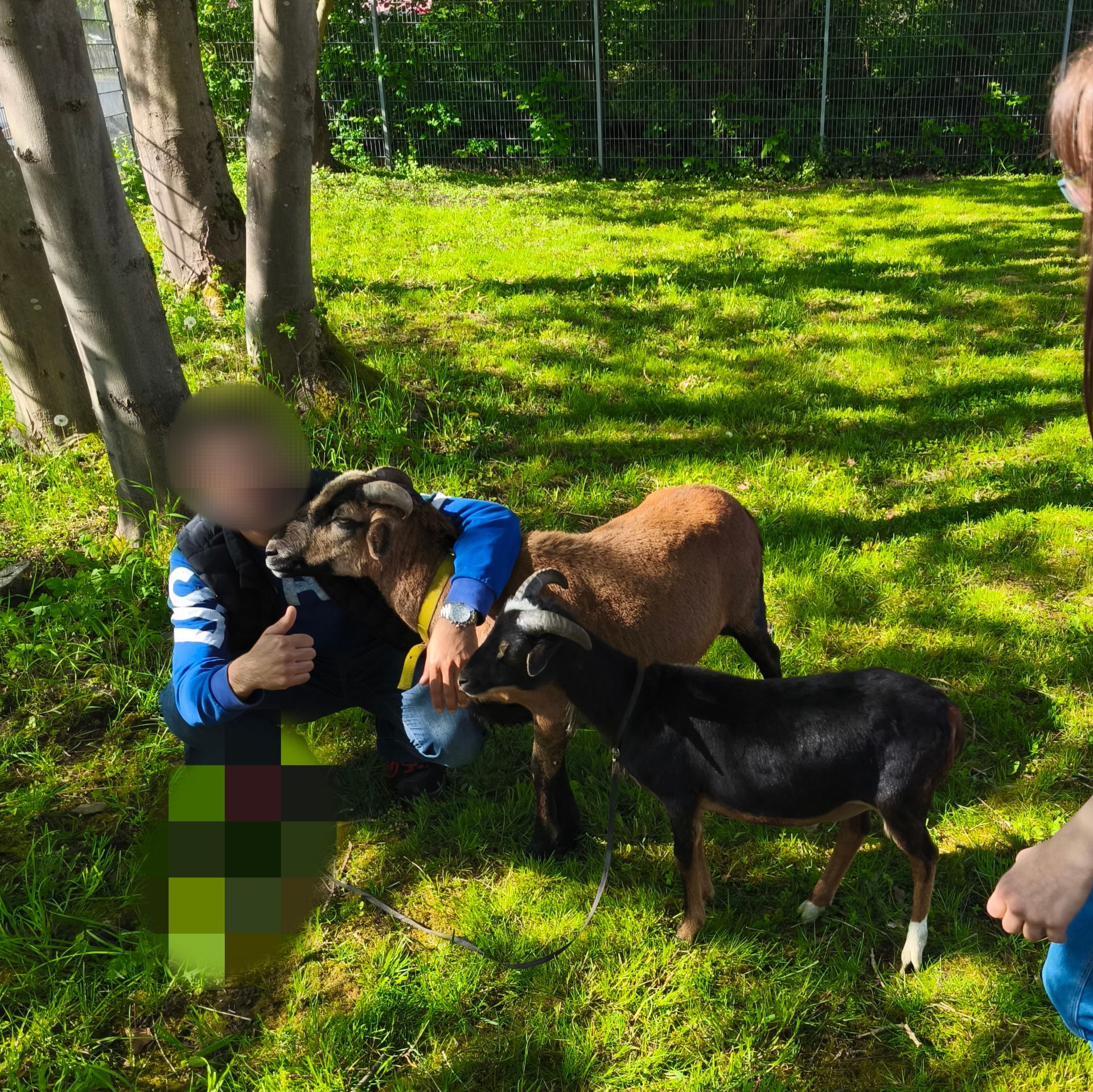 Die Schafe (Kamerunschafe) sind ebenfalls außergewöhnlich handzahm und Menschenorientiert.